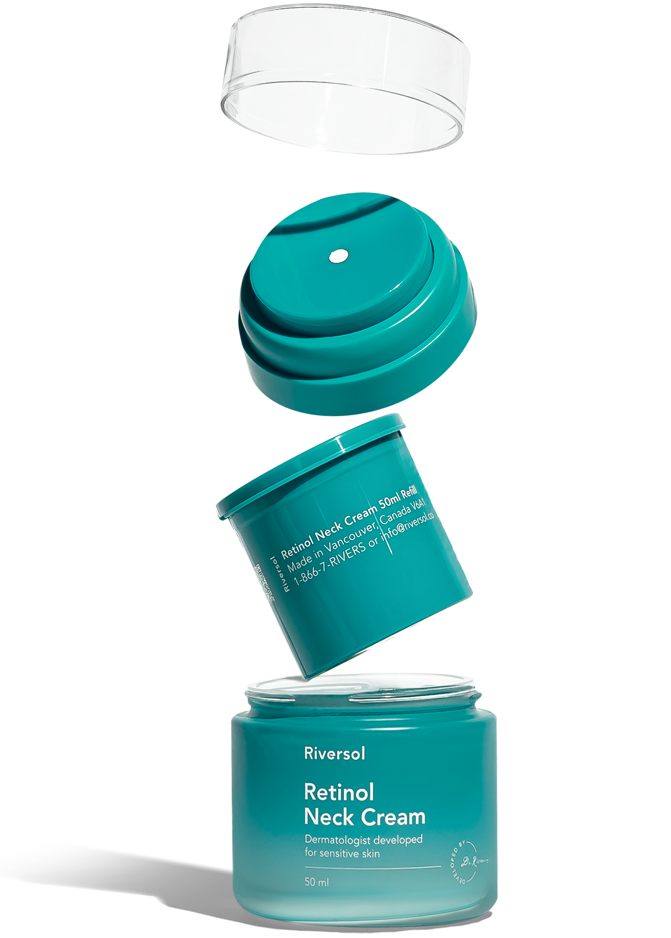 A retinol cream in a refillable glass jar developed specifically for the delicate neck and chest.